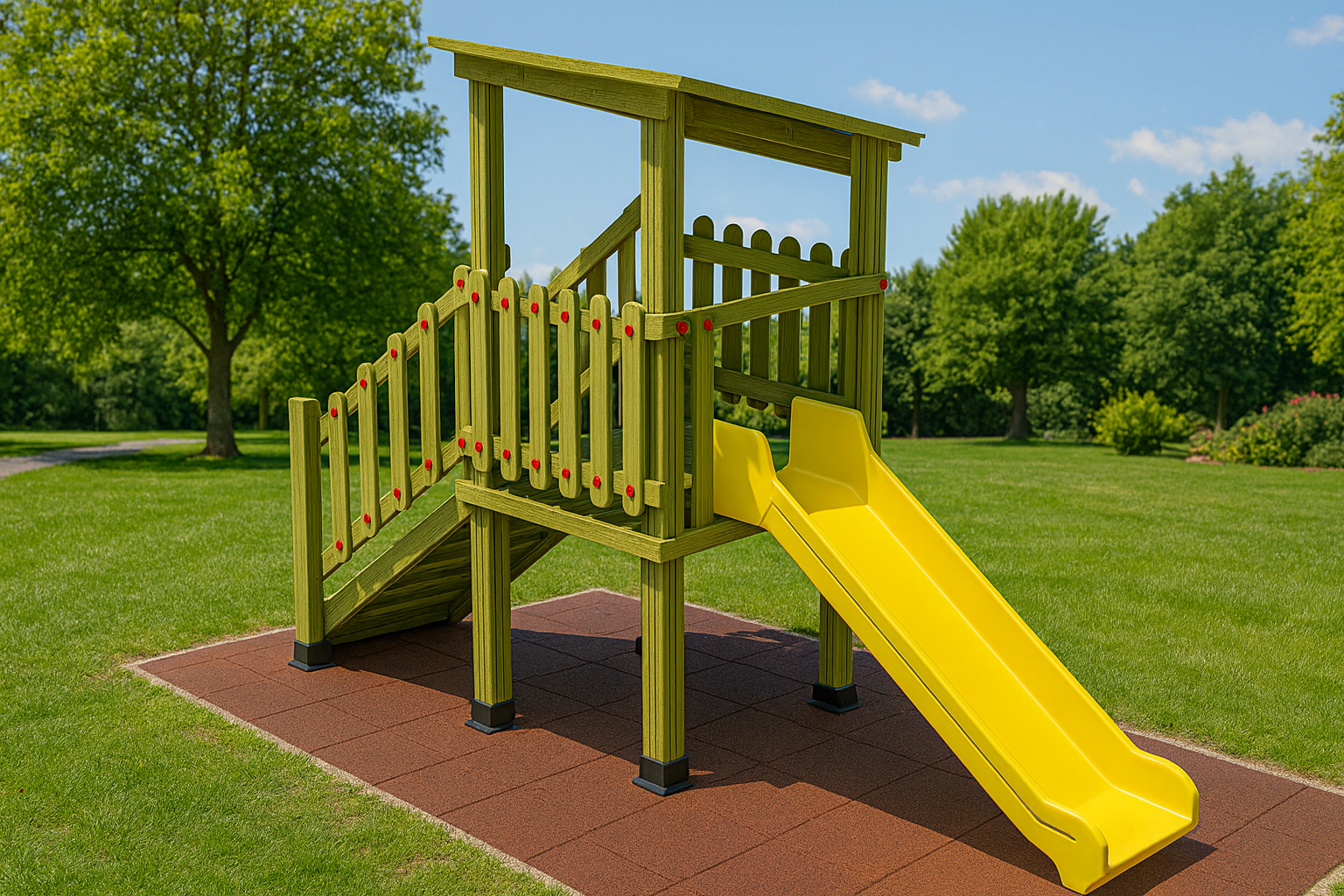 Oturum Alanı 140×450 Cm Güvenlik Alanı 440×800 Cm Kullanıcı Yaşı 3 – 7 Yaş Kullanıcı Sayısı Maximum 10 Kişi Ahşap Cinsi 1.Sınıf Çam Emprenyeli Ahşap Koruyucu Hemel Ahşap Koruyucu Vakumlu Emprenye Kule Direği 4 Adet Kule Direği Merdiven H:100 Ahşap Merdiven H:100 Ahşap Merdiven Korkluğu Takım Platform 1 Adet Ahşap Platform Kaydırak Türü 1 Adet H:1000 Cm Düz Polietilen Kaydırak Güvenlik Korkulukları 2 Adet Ahşap Güvenlik Korkuluklar Ahşap Çatı 1 Adet Düz Eğimli Ahşap Çatı